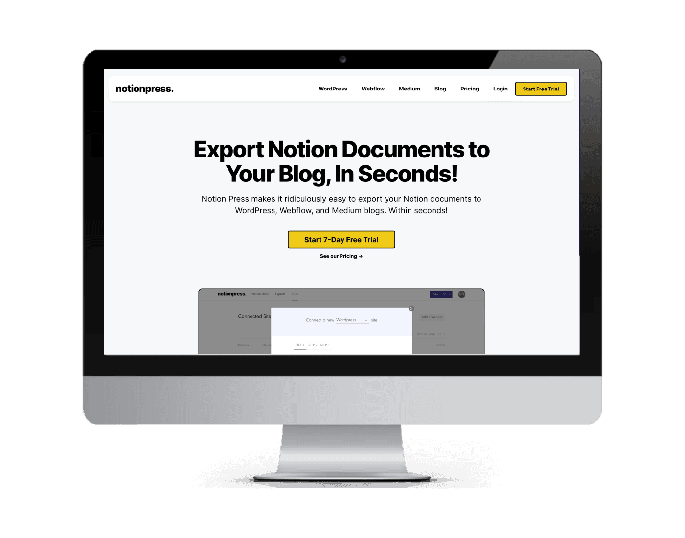 NotionPress helps users to export 1000s of notion pages and documents to various CMS like WordPress, Webflow, and Medium in one click.